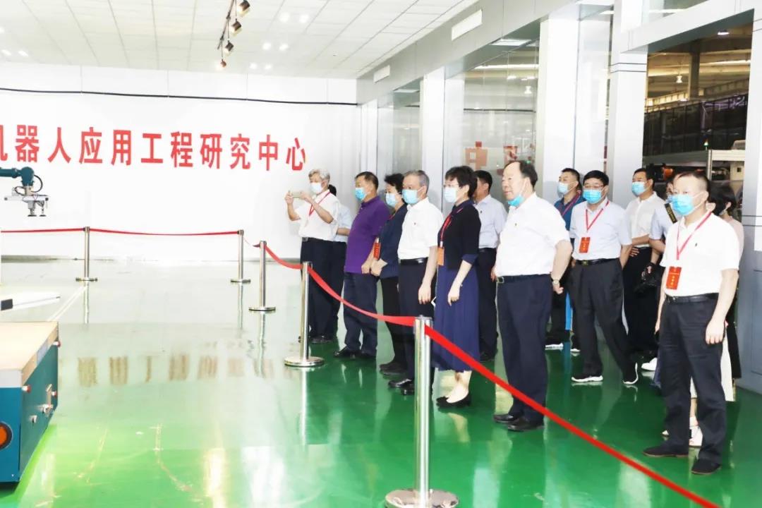 调研组认真听取企业生产经营、科技创新、转型升级等情况介绍,详细了解今年以来企业应对疫情冲击、推动复工复产的举措和取得的成效。在森源电气,调研组步入公司现代化的厂房,详细了解了钣金柔性智造系统、智能柜体装配生产线、智能机器人折弯工作站等的生产及研发情况。在机器人应用工程研究中心,调研组驻足细看,对森源的技术实力给予了充分肯定。
