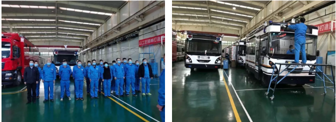 森源鸿马和森源汽车的生产一线工人为了第一时间将应急防疫车辆发出,实行24小时轮班制,于正月初二当日下午就发出管控卡点车辆;销售人员实行线上办公,积极联系各地疾控中心、卫健委、公安、医院等相关部门,提供防疫管控卡点车辆。从初二到初五,公司累计订单30余台,发出车辆17台。销售、生产、物资等部门全部进入应急工作状态,驰援防控第一线。森源人怀揣大爱,争分夺秒奋战在工作岗位上,坚决打赢疫情防控阻击战。