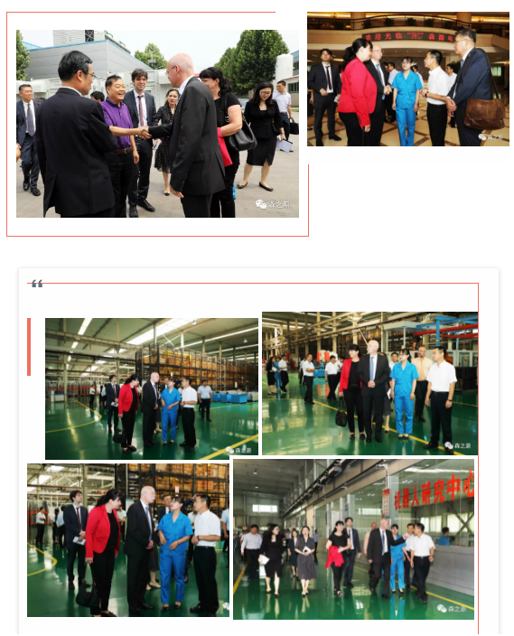 7月16日,德国驻华大使葛策先生和夫人一行莅临奇异果(中国)QIYIGUO官方网站参观,许昌市副市长刘胜利,长葛市委书记尹俊营等陪同。森源集团董事局主席楚金甫,森源电气总经理曹宏热情接待并介绍企业情况。