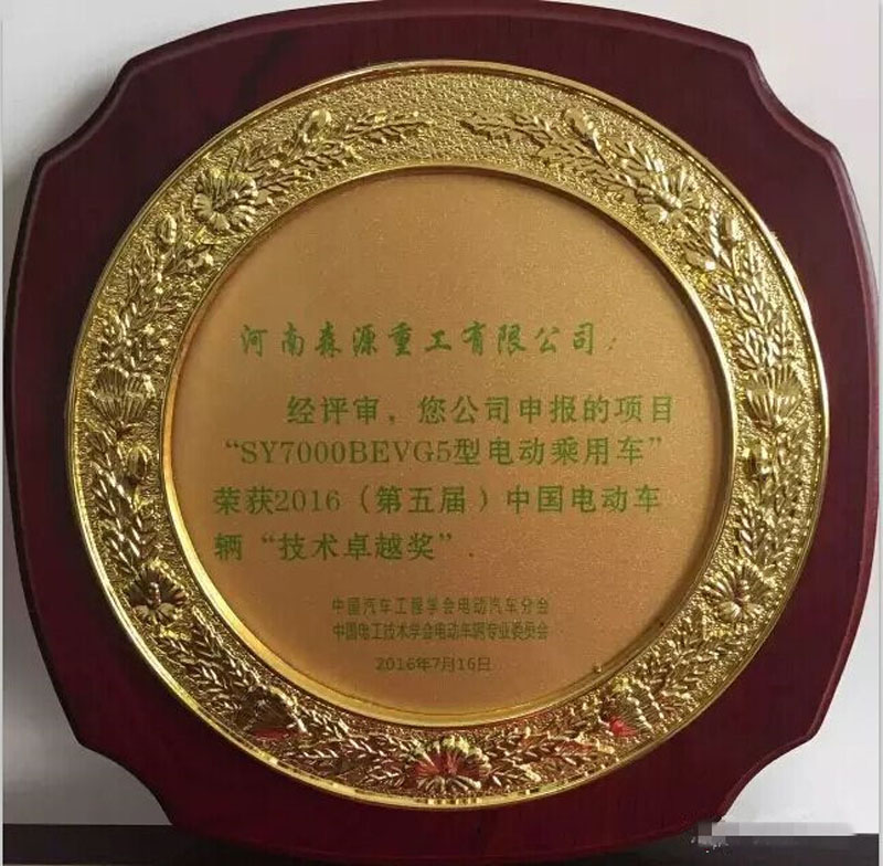 近日,2016年中国电动车辆技术卓越奖评选结果在京揭晓。河南森源集团旗下森源重工自主研发生产的SYG5型电动乘用车荣获2016年度“电动车辆技术卓越奖”。值得一提的是,这也是继2015年之后森源重工再次摘得此项殊荣。