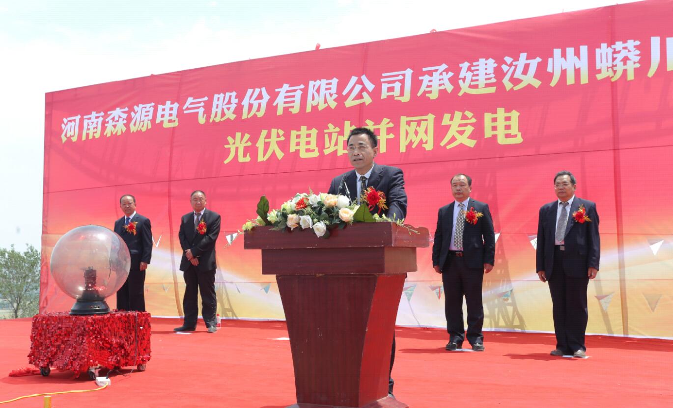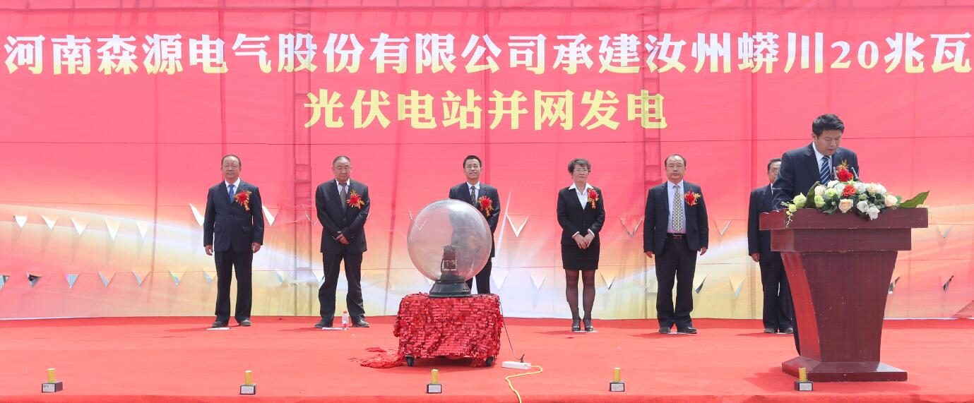 5月18日,由森源集团旗下河南森源电气股份有限公司承建的汝州蟒川一期20兆瓦光伏电站并网发电仪式成功举行。集团副总裁、电气板块总经理曹宏,集团总裁助理李福全,汝州鑫泰光伏电力科技有限公司副总经理王冰等领导和项目有关部门负责人出席仪式并启动电源开关,并网发电。