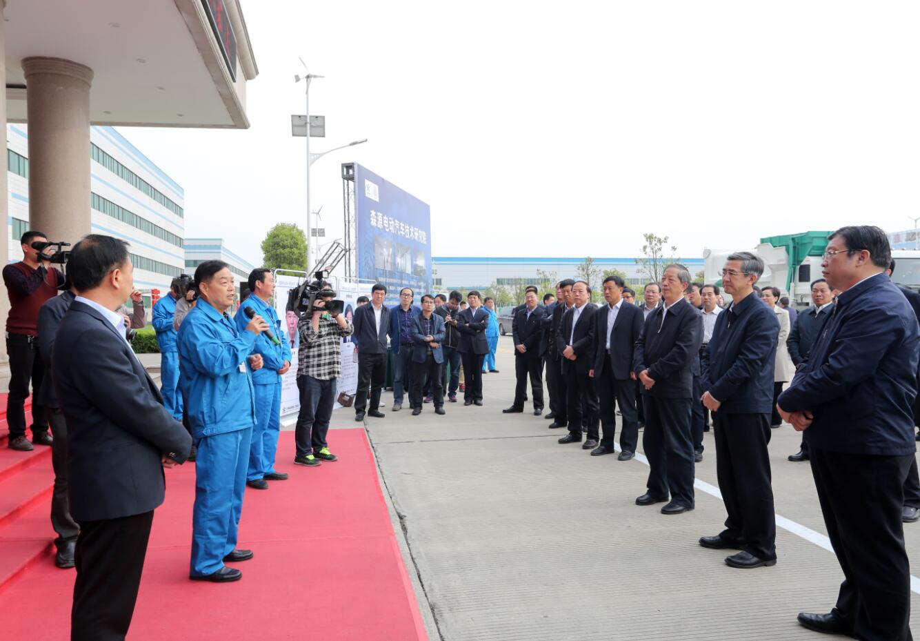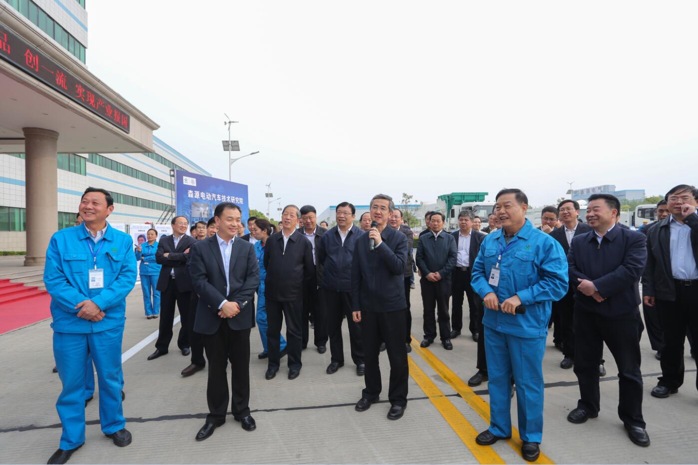 集团董事局主席楚金甫汇报企业基本情况:“森源集团始建于1992年,多年来坚持创新驱动发展的战略,现已成为集电气制造、车辆制造、新能源、投资物贸四大板块于一体,拥有19家子公司的集团型企业。我们的快速发展,得益于不断的科技创新。如今在森源集团的产品序列中,新产品的比重已经达到了35%,高科技产品的比重达到了80%。”