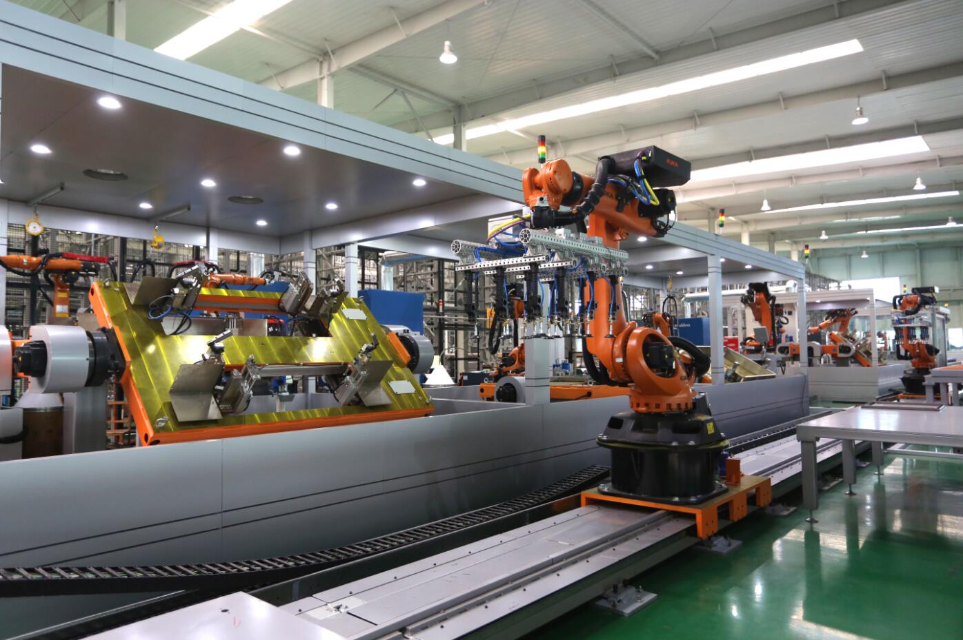作为森源电气数字化工厂的重要代表,引进自德国、意大利、美国等先进国家的技术并集成创新而成的钣金柔性生产系统,不但是世界上最先进,也是目前唯一的一条机器人集成制造系统。它将为森源电气实现“智能装备制造、制造智能装备”的战略目标贡献力量。看到意大利工程师在认真的调试机器,邓书记微笑着点头示意,称赞说:“森源,作为河南的一张名片,名副其实!”