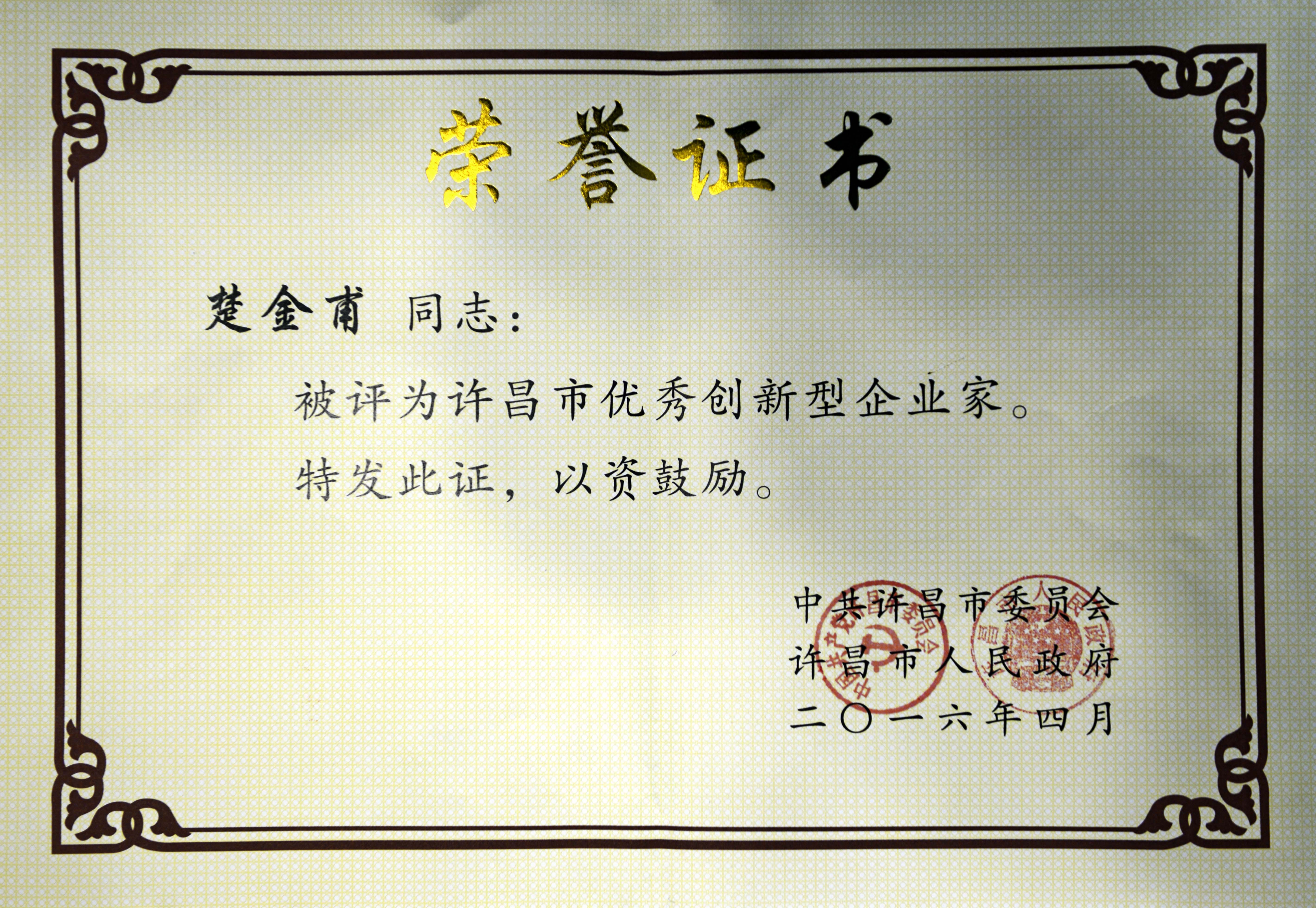 森源集团揽获许昌市科技创新19项大奖 董事局主席 总裁楚金甫 荣获“许昌市优秀创新型企业家”称号